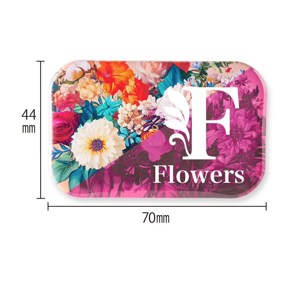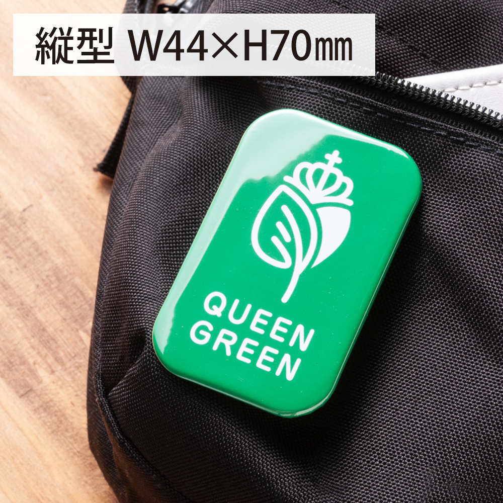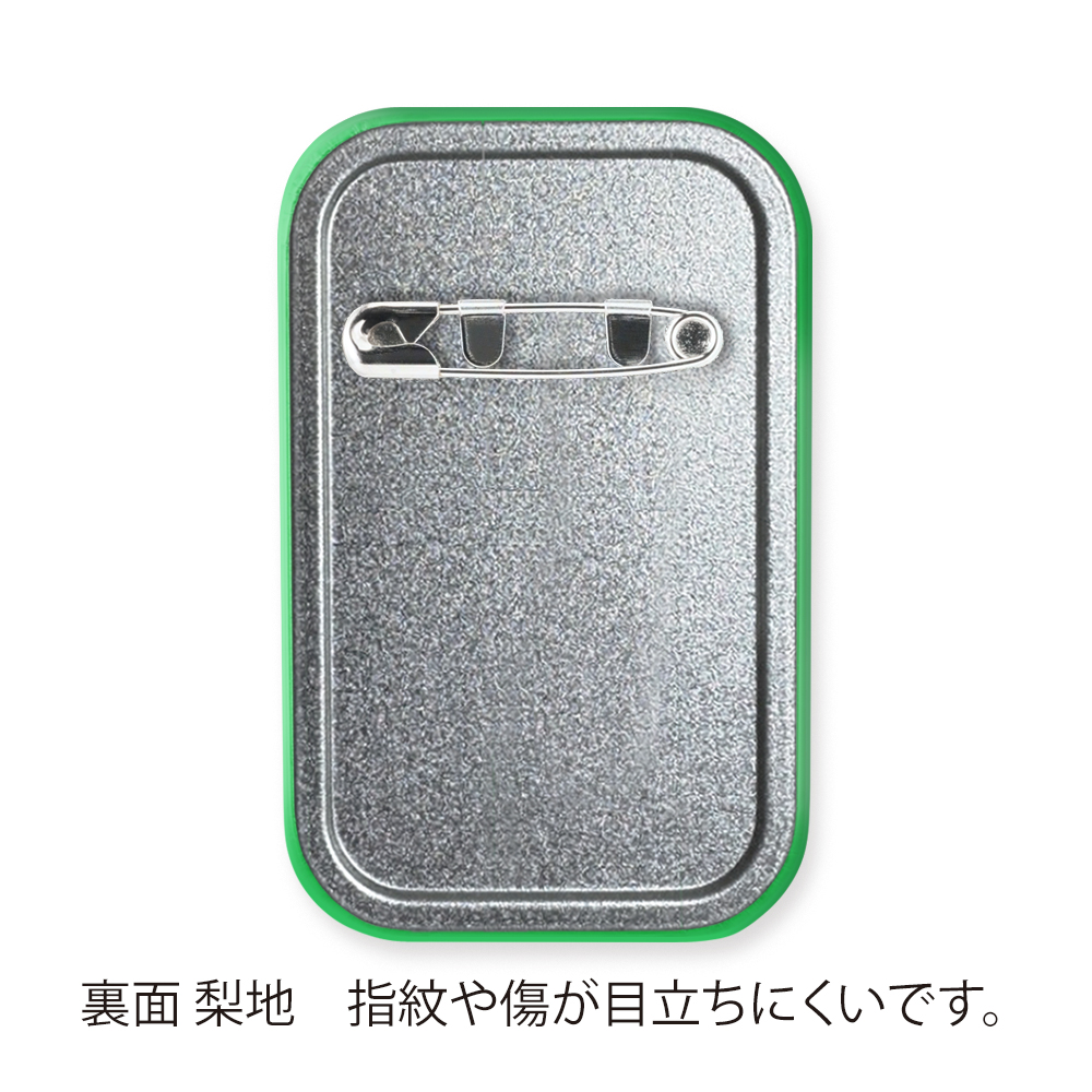 縦長フォルムが視線を引きつける、W44×H70mmの角丸長方形缶バッジ。ロゴ等をしっかりと見せたい方に最適です。角が丸い安心設計で、安全ピン付きだから取り外しも簡単。存在感がありながらもスマートな印象で、展示会・フェス・キャンペーンなど幅広いイベントシーンで大活躍します。オリジナルデザインにも対応可能な、実用性とPR効果を兼ね備えたアイテムです。